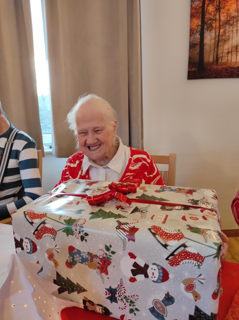Am 24.12. hatten unsere Bewohner ein Staunen im Gesicht, als sie zur festlich gedeckten Kaffeetafel kamen. Bei Stolle, selbstgebackenen Plätzchen und Weihnachtsmusik wurden alle auf die Bescherung eingestimmt. Dann ging es auch schon los, das ein oder andere Gedicht sowie Lied wurde vorgetragen, viele Geschenke wurden überreicht, dann startete das große Auspacken und man sah in strahlende Gesichter.
