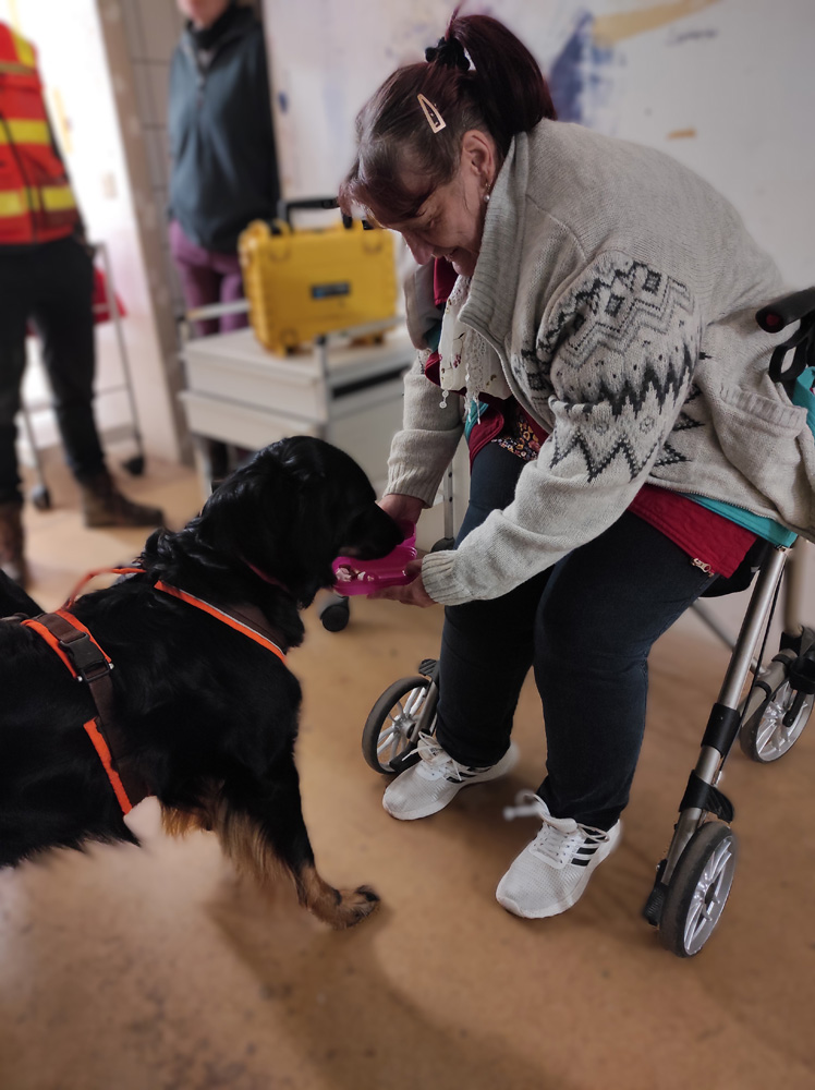 Als herzliches Dankeschön stattete ein ausgebildeter Therapiehund unseren Bewohnern anschließend noch einen Besuch ab und ließ sich ausgiebig verwöhnen. Für alle Beteiligten war es ein bereicherndes und unvergessliches Erlebnis.