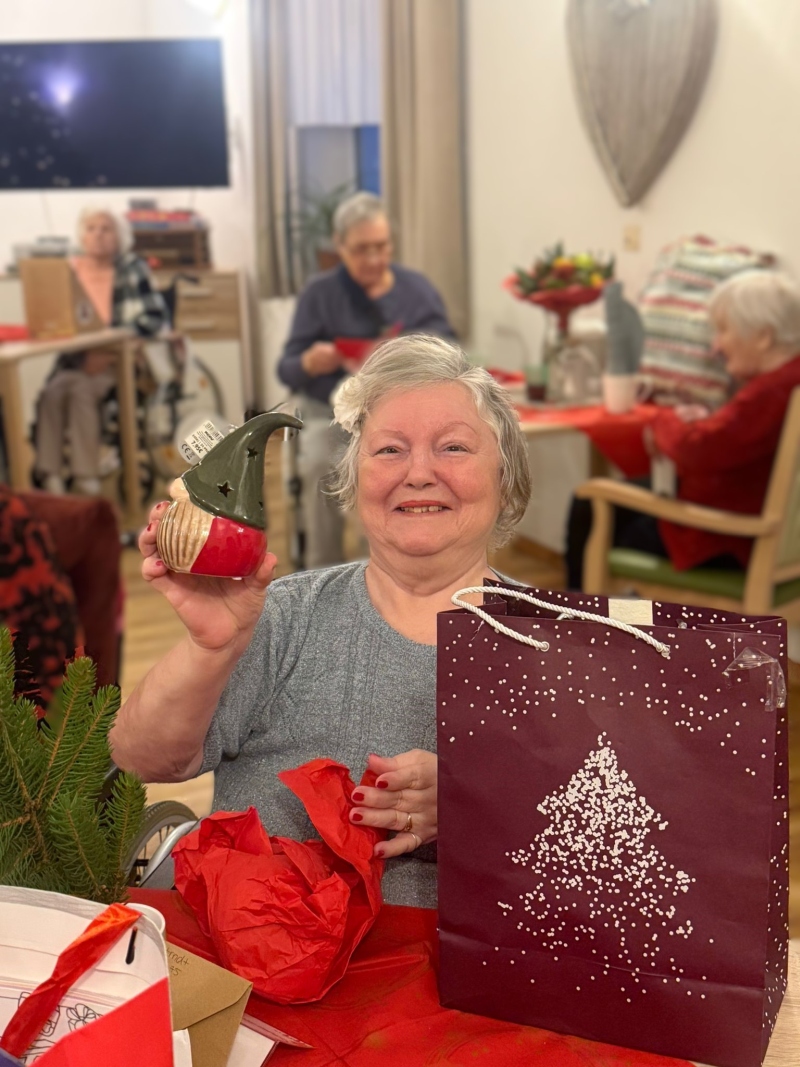Am 24.12. hatten unsere Bewohner ein Staunen im Gesicht, als sie zur festlich gedeckten Kaffeetafel kamen. Bei Stolle, selbstgebackenen Plätzchen und Weihnachtsmusik wurden alle auf die Bescherung eingestimmt. Dann ging es auch schon los, das ein oder andere Gedicht sowie Lied wurde vorgetragen, viele Geschenke wurden überreicht, dann startete das große Auspacken und man sah in strahlende Gesichter.